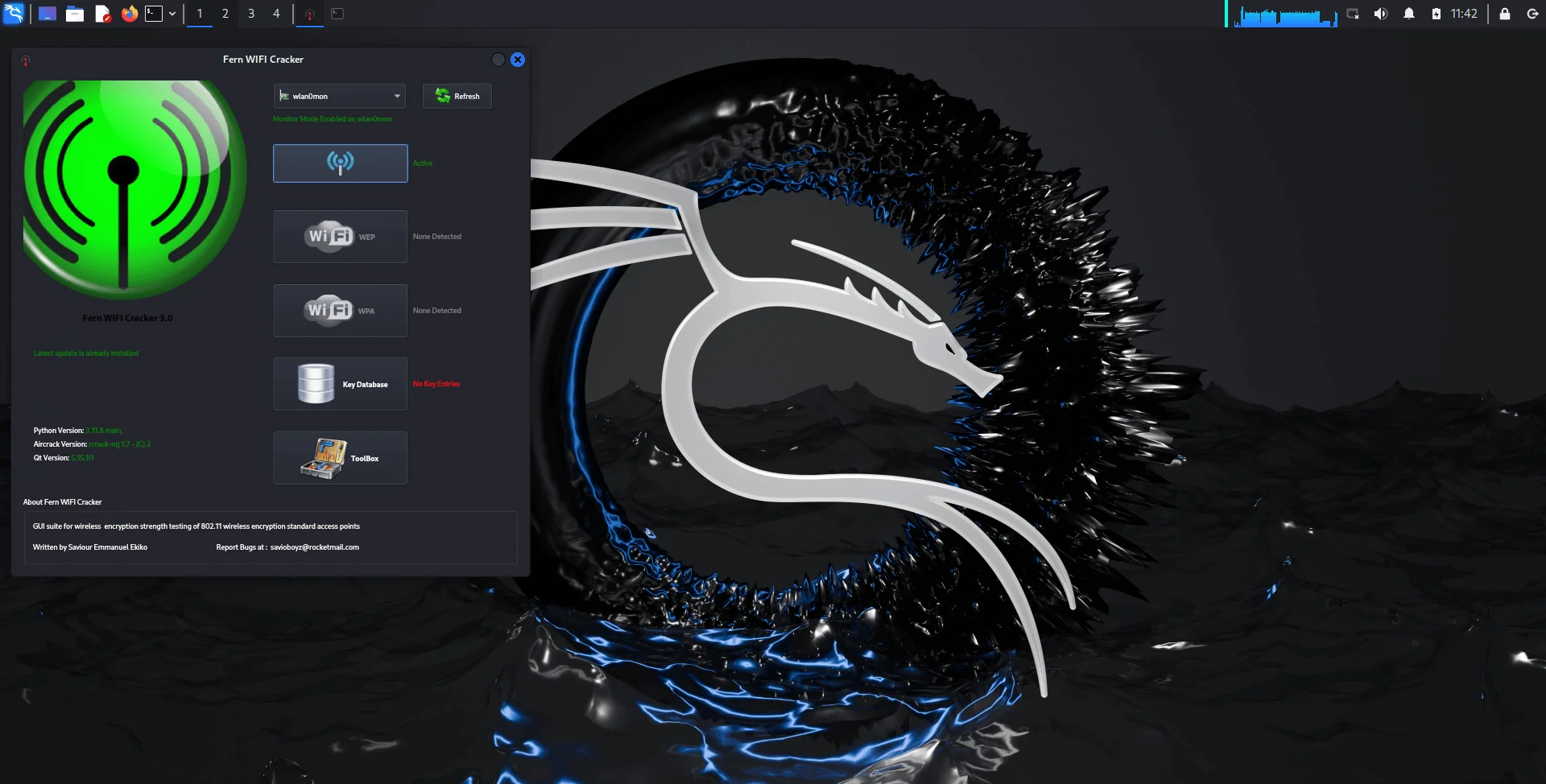 Fern Wifi Cracker jest to narzędzie przeznaczone do testowania zabezpieczeń sieci bezprzewodowych, w tym analizy i łamania haseł Wi-Fi. Przy jego użyciu można wykradać ciasteczka oraz przeprowadzać siłowe ataki na panele administracyjne routerów. Narzędzie wspiera również ataki na sieci Wi-Fi zabezpieczone WPS, wykorzystując znane luki w zabezpieczeniach tego protokołu. Fern WiFi Cracker automatycznie wykrywa urządzenia będące w zasięgu naszej karty sieciowej, identyfikuje typy zabezpieczeń i sugeruje odpowiednie ataki.